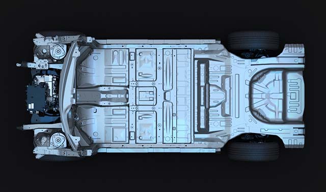 Nissan 的工程师为 CMF-EV 渠道供给了一个平整的板面,电动机的占位符被制作在前轴和后轴邻近,而电池组的规划尽可能纤薄,形成了渠道的结构支撑体系。CMF-EV 渠道为 Ariya 的规划师供给了一张空白画布,让他们有时机探究 Ma 概念,这是日产专心于把握空白空间潜力的规划理念。